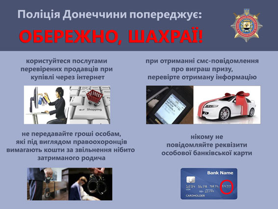 По данному факту правоохранителями открыто уголовное производство по ст.190 «Мошенничество» Уголовного кодекса Украины. Согласно санкции данной статьи, правонарушителей ожидает наказание в виде ограничения свободы сроком до 3-х лет, сообщает Покровский отдел полиции Донецкой области.