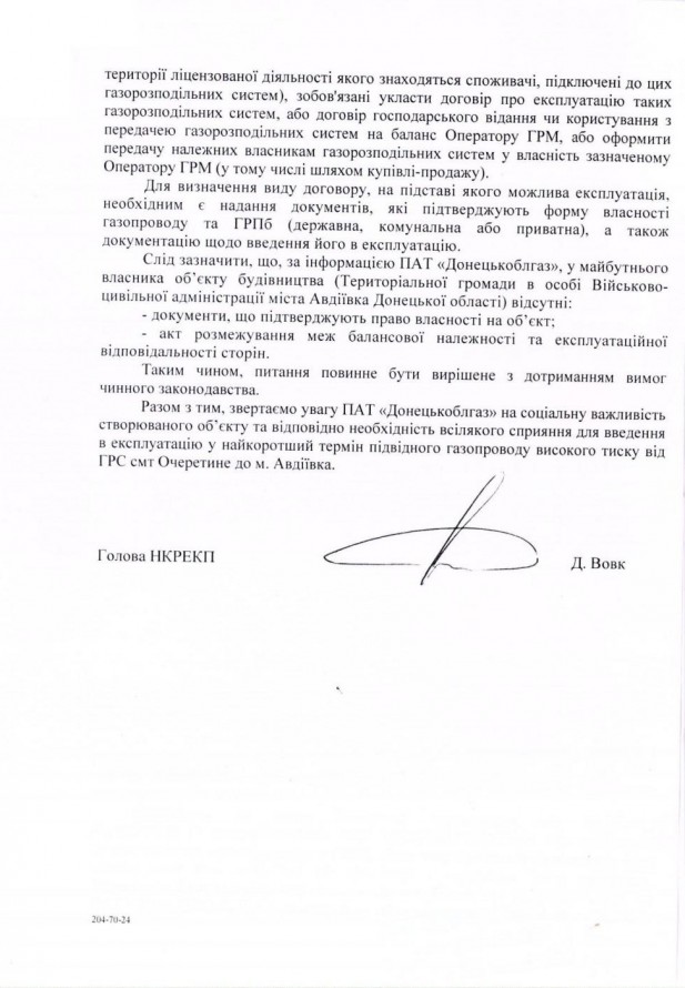 Недавно Авдеевская военно-гражданская администрация подписала договор о техническом обслуживании нового газопровода "Очеретино-Авдеевка".