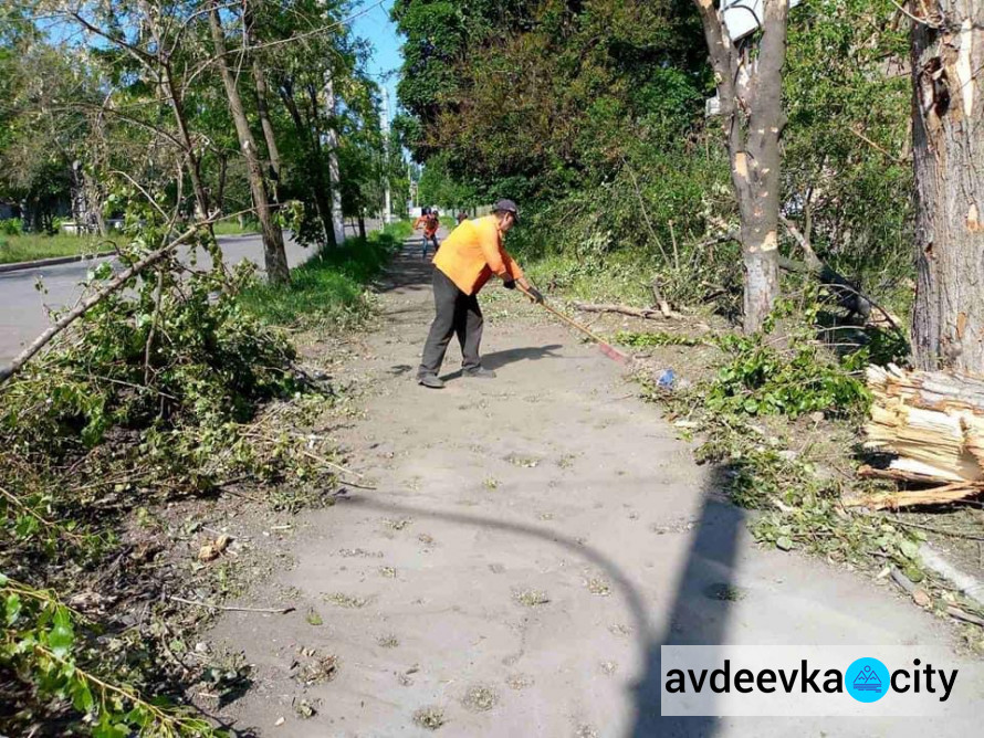 Авдіївські комунальники звільняють від уламків снарядів, повалених дерев та будівельного сміття проїжджу частину по вул. Комунальній. Про це повідомляється на офіційній сторінці організації у Facebook.