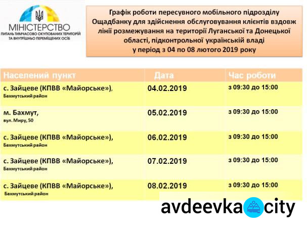 На этой неделе мобильное подразделение "Ощадбанка" будет работать в Бахмуте и на КПВВ "Майорское".