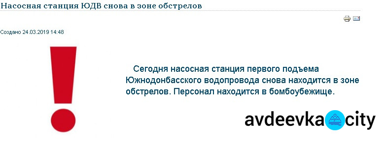 По данным КП «Компания «Вода Донбасса», станция «снова находится в зоне обстрелов», а «персонал находится в бомбоубежище».