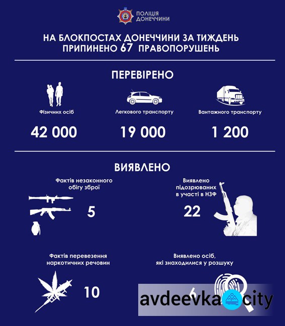 Также правоохранители остановили на блокпостах 22 человек, которые, согласно базам данных МВД, причастны к участию в незаконных вооруженных формированиях, захвативших часть Донецкой области.