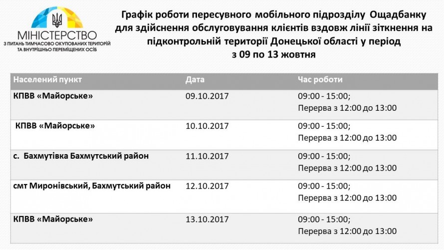 Напомним, что с ноября 2015-го в Донецкой и Луганской областях работают мобильные банковские подразделения «Ощадбанка» для предоставления банковского обслуживания жителям населенных пунктов прифронтовой зоны.