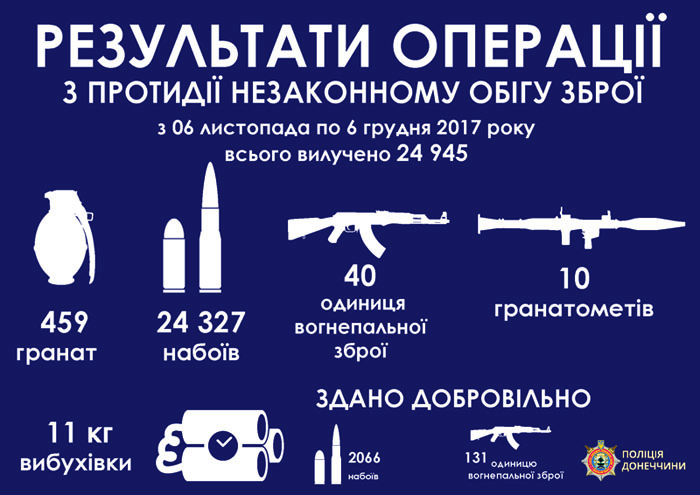 Полиция Донецкой области сообщила результаты месячника усиленной борьбы с нелегальным оборотом оружия, боеприпасов и взрывчатки.