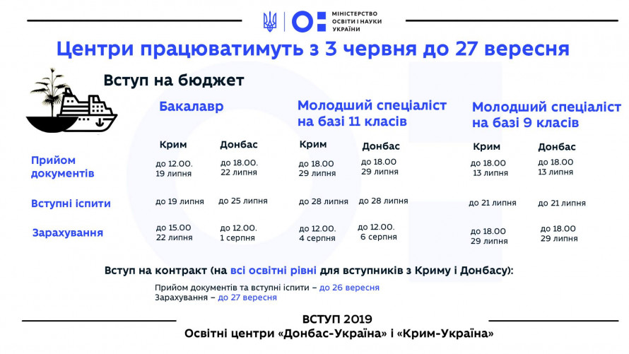 Варто відзначити, що цього року змінилися дати, до яких потрібно подати документи вступникам з Криму та непідконтрольної частини Донбасу, що хочуть вступити на бюджет через освітні центри.