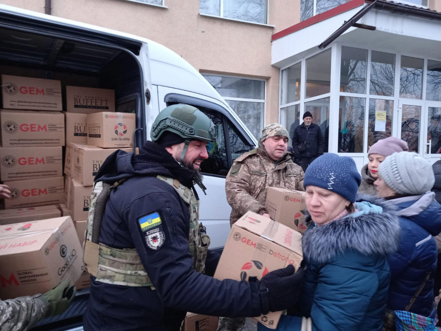 Співробітники Авдіївської міської військової адміністрації спільно з членами добровольчого формування територіальної оборони міста та волонтерами наприкінці минулого тижня роздали авдіївцям великі упаковки гуманітарної допомоги (продукти, гігієна, теплі речі) від організації GEM (Global Empowerment Mission).