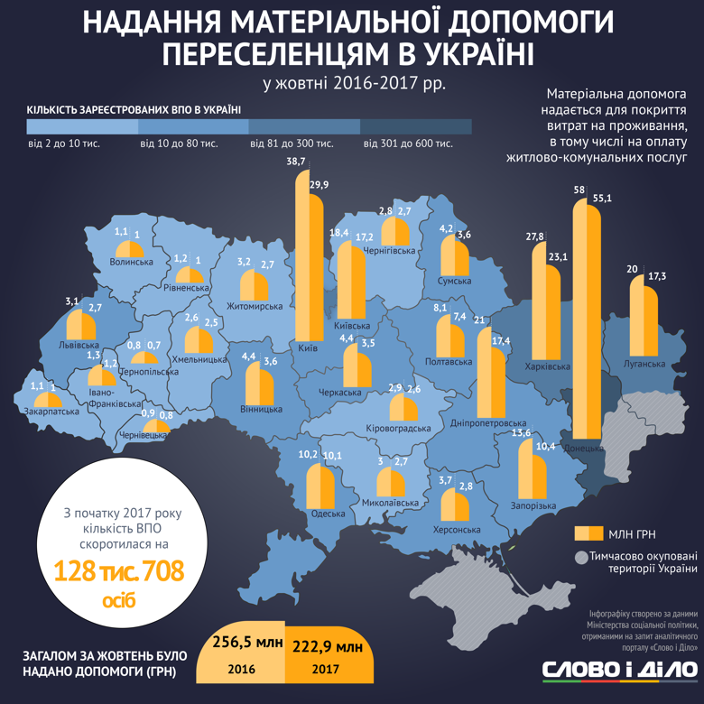 Детальнее о том, как платили материальную помощь вынужденным переселенцам - смотрите в инфографике.