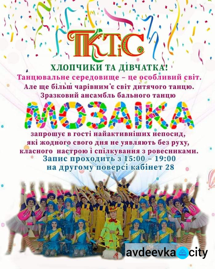 Танець - це дивовижний неповторний світ. А особливо це стосується танців, що виконують діти. Зразковий ансамбль бального танцю "Мозаіка" запрошує маленьких авдіївців вступити в свої ряди, повідомляє avdeevka.city.