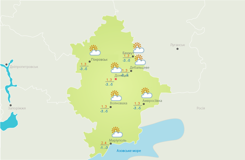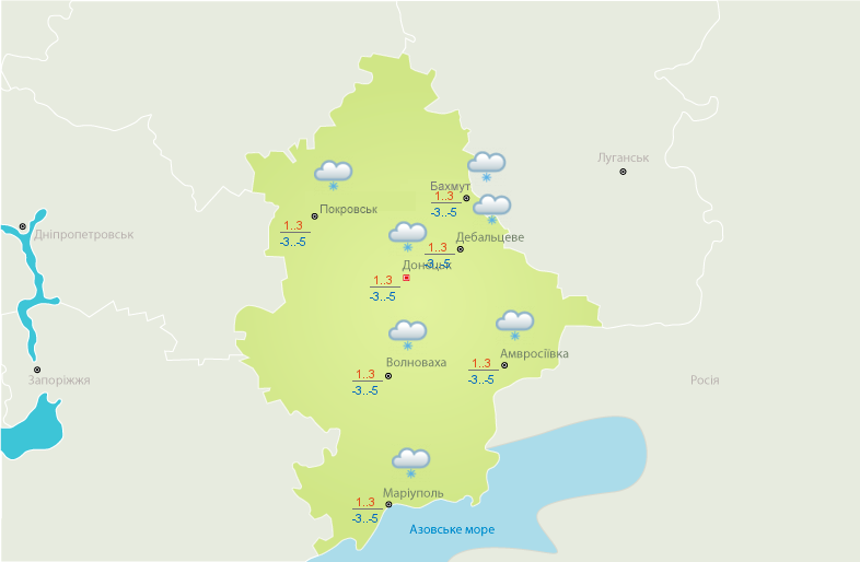 В воскресенье, 18 ноября, в северных и западных областях пройдет мокрый снег, на остальной территории Украины ожидается солнечная погода, без осадков. Ночью ожидаются морозы от 0...-2 в южных областях и до -5...-7 - на остальной территории Украины. Днем температура будет держаться в пределах +1...+3, на Закарпатье воздух прогреется до +5...+7.