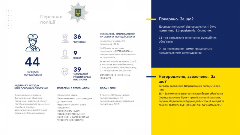 За тот же период 18 сотрудников были награждены – за добросовестное исполнение обязанностей. Среди поощрений были премии, почетные грамоты (от местной власти и президента), благодарности, медали (в том числе за участие в АТО-ООС).