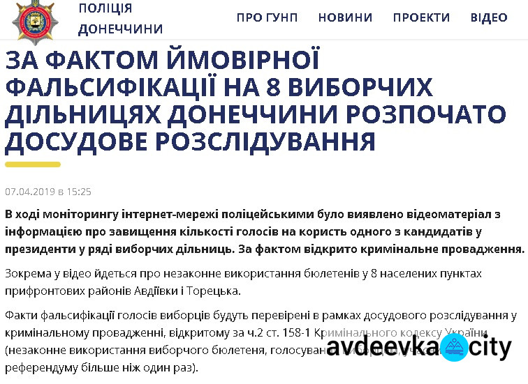 В ходе мониторинга интернет-сети полицейскими был обнаружен видеоматериал с информацией о завышении количества голосов в пользу одного из кандидатов в президенты в ряде избирательных участков. В частности, в видео говорится о незаконном использовании бюллетеней в 8 населенных пунктах прифронтовых районов Авдеевки и Торецка, сообщает полиция Донетчины.