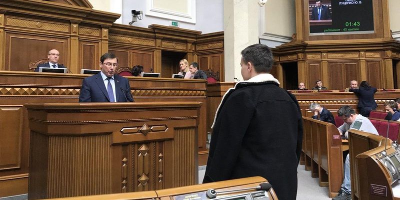 15 марта генпрокурор Юрий Луценко внес в Верховную Раду три представления на нардепа, Героя Украины Надежду Савченко. Ее подозревают в подготовке терактов в сессионном зале Верховной Рады. По словам Луценко, следствие имеет доказательства того, что она планировала уничтожить боевыми гранатами две ложи, а с помощью автоматов добивать тех, кто выживет.