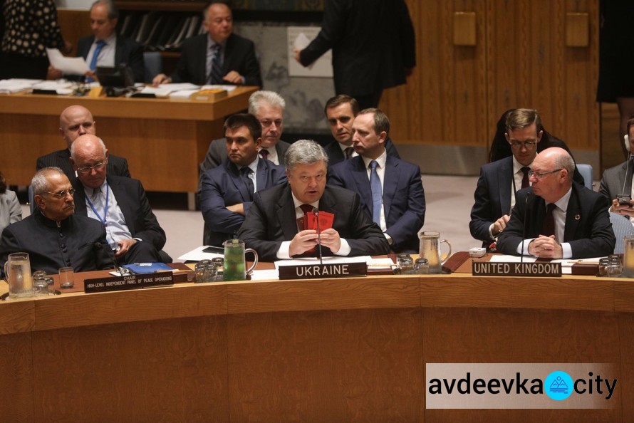 «Развертывание миротворческой операции ООН скорее восстановит справедливость, чем заморозить конфликт и зацементирует оккупацию, - заявил Порошенко. - Справедливым было бы восстановить суверенитет Украины над всей ее территорией. Справедливым было бы гарантировать, что никто не сможет забрать у Украины свободу».