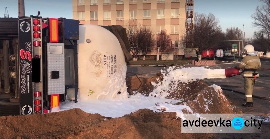 Последствия аварии, совершенной водителем фуры на территории АКХЗ , удалось устранить. Об этом сообщает avdeevka.city