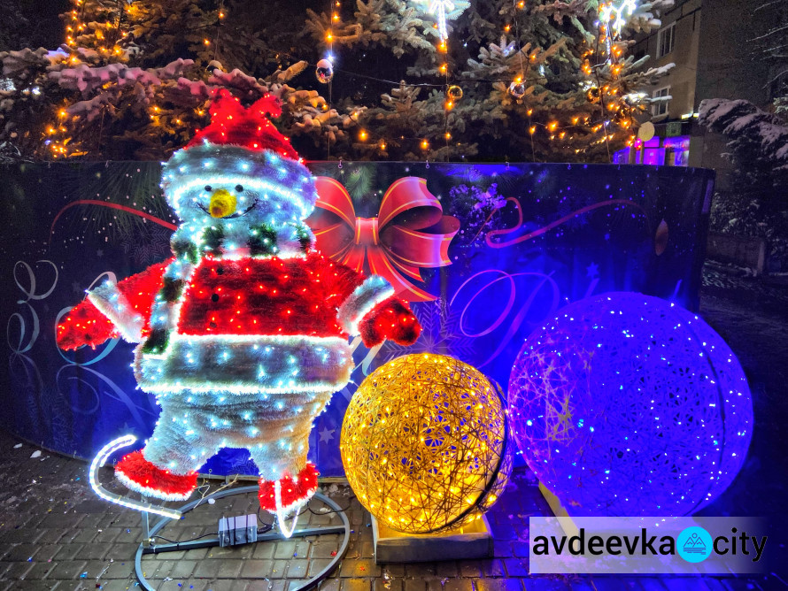 Новогоднее настроение в Авдеевке ощущается полным ходом. Украшенные витрины магазинов, мерцающие гирлянды на окнах горожан, но самое главное – эффектно наряженные две главные городские елки. Одна – на площади Дворца культуры, вторая – в центре города на бульваре Шевченко. Кроме того, уже второй год подряд авдеевцы и гости города могут насладиться красотой новогодней фотозоны и сделать эффектные, памятные фото. Сияющая инсталяция яркого снеговивика с новогодними шарами создана в рамках конкурса "Преобразим Авдеевку вместе" от общественной организации «Платформа совместных действий». Благодаря гранту от Метинвеста отдел культуры ВГА и ОО "Сила идей" воплотили в реальность настоящую зимнюю сказку, сообщает avdeevka.city.