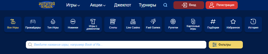 Одним из основных достоинств игрового ресурса Золотой Кубок является хороший выбор автоматов. Вы можете в демо слоты играть бесплатно, совершенно не ограничиваясь во времени, или испытать удачу на реальные деньги.