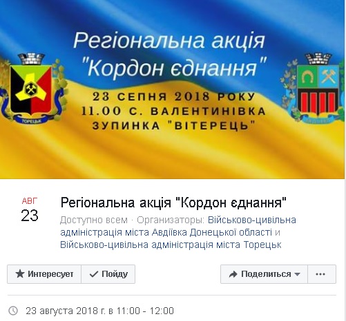 По инициативе военно-гражданских администраций города Авдеевки и города Торецка 23 августа состоится Региональная акция "Граница единения" ("Кордон єднання").