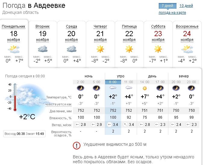 Понедельник, 18 ноября, в Авдеевке - ухудшение видимости до