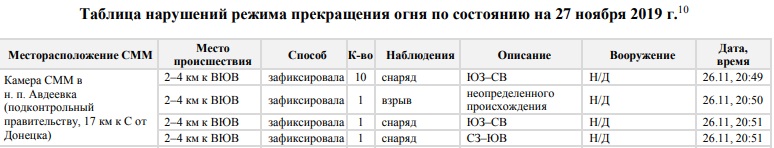 В отчет СММ ОБСЕ (опубликован вечером 28 ноября), который изучил сайт avdeevka.city, отмечается, что большинство НРПО зафиксировано к северу от н. п. Широкино (подконтрольное правительству,