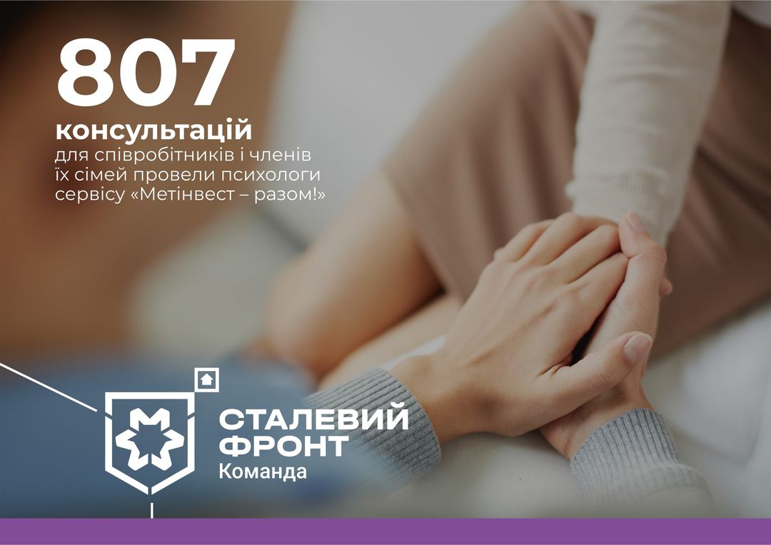 ФАКТ: за час роботи сервісу психологи провели 807 індивідуальних консультацій для співробітників і членів їх сімей, 3 вебінари та 6 сеансів групової терапії для колективів сервісних підприємств Групи Метінвест.
