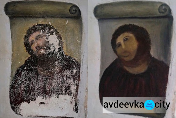 "Пушистый Иисус", пожалуй, является самой известной неудачной попыткой реставрации предмета искусства, которая сумела "добиться" всемирного позора в социальных сетях. В 2012 году знаменитая фреска испанского живописца Элиаса Гарсиа Мартинеса "Ecce Homo" в храме Милосердия испанского города Борха уже порядком поизносилась (она была сделана в 1930 году), поэтому прихожанка Сесилия Хименес в маленькой деревенской церкви решила немного подкрасить произведение искусства. Результат ее работы поверг в шок не только церковь, но и весь мир.