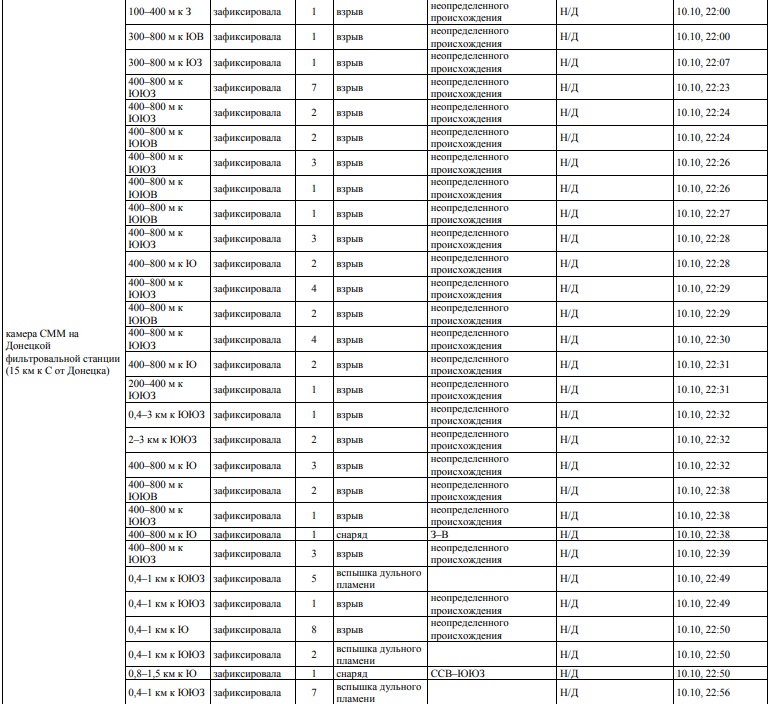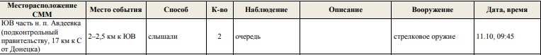 В таблицу НРПО попала и Авдеевке, где утром 11 октября наблюдатели слышали две очереди из стрелкового оружия.