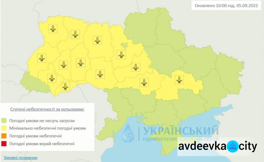 У північно-східних та східних областях і у повітрі 0-3° - II рівень небезпечності, помаранчевий.