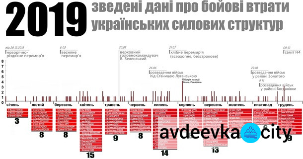 По данным Генштаба на 19 декабря, боевые потери ВСУ в зоне ООС с начала года составили 97 человек; ранены 499 военный, 78 получили другие повреждения. Небоевые потери – 77 погибших.