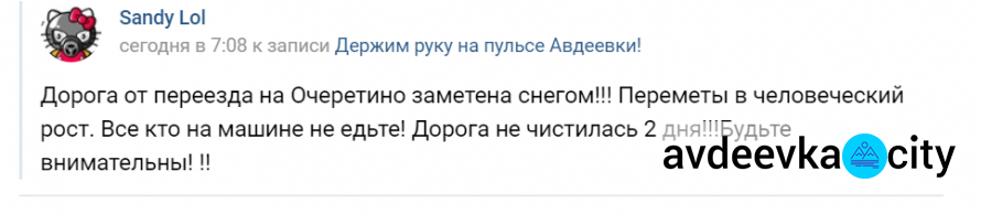 По словам местных перевозчиков, сегодня рейсы в направлении Очеретино, Димитрова, Селидово и Покровска совершаться не будут. Причиной этому послужили плохие погодные условия и огромные заметы на дороге, которые на данный момент никто не расчищает.