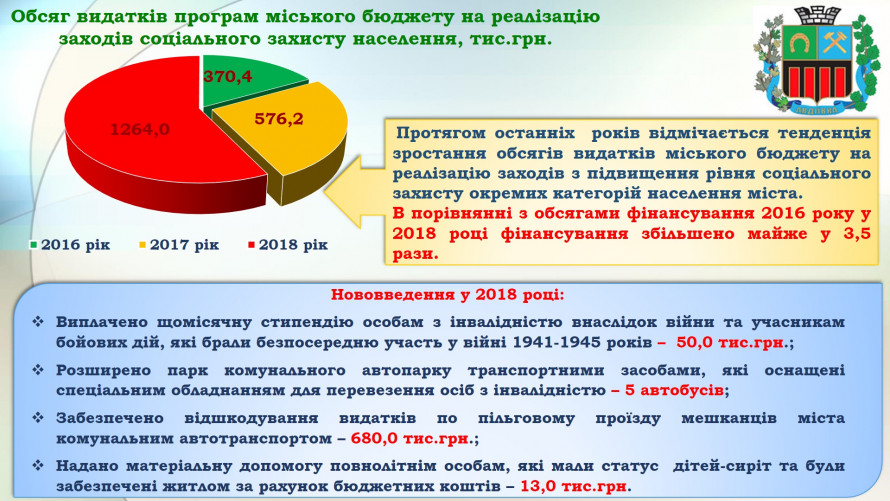 Як повідомляює Управління соціального захисту населення військово-цивільного адміністрації міста Авдіївка, в порівнянні с обсягами фінансування 2016 року у 2018 році фінансування збільшено майже у 3,5 рази: