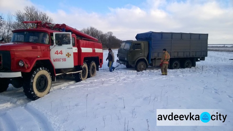 Так, 18 января в 13:57 представители 25-го Государственного пожарно-спасательного отряда с помощью автоцистерны и буксировочного троса отбуксировали автомобиль Камаз с обочины на безопасный участок проезжей части дороги. Произошло это между селами Камышеватое и Боевое Мангушский района.