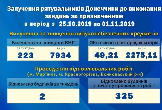 Спасатели-пиротехники ежедневно проводят работы по очистке территории Донецкой области от взрывоопасных предметов. Так, за неделю было изъято и уничтожено 223 единицы боеприпасов, а также обследовано