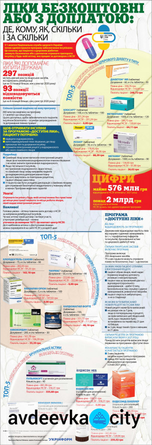 Йдеться про ліки від цукрового діабету, серцево-судинних хвороб та бронхіальної астми. Програма "Доступні ліки" включає 293 лікарські засоби, 70 з яких пацієнти з електронним рецептом від сімейного лікаря можуть отриимати повністю безоплатно, решту - з частковою оплатою, повідомляє avdeevka.city з посиланням на Укрінформ.