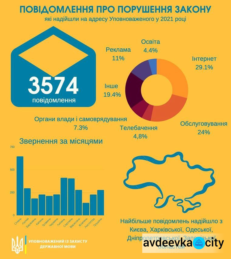 Більшість звернень (1129) надійшла у першому кварталі 2021 року та протягом року їхня кількість поступово падала. У мовного омбудсмена таку динаміку пов’язують із тим, що саме у цих періодах набули чинності окремі статті закону про державну мову.