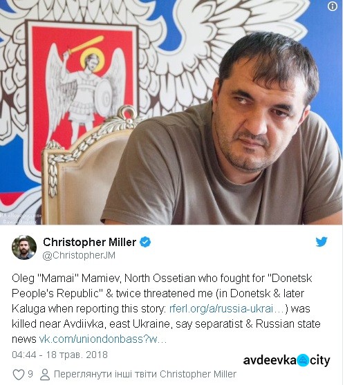 В районе авдеевской промзоны вечером 17 мая был смертельно ранен командир «Пятнашки» («интернациональная бригада» российско-оккупационных войск) Олег Мамиев с позывным "Мамай".