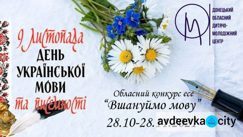 До Дня української писемності та мови комунальний позашкільний навчальний заклад «Донецький обласний дитячо-молодіжний центр» за підтримки управління сім'ї, молоді та масових заходів національно-патріотичного виховання Донецької ОДА проводить конкурс есе «Вшануймо мову», повідомляє avdeevka.city з посиланням на сайт Донецької ОДА.