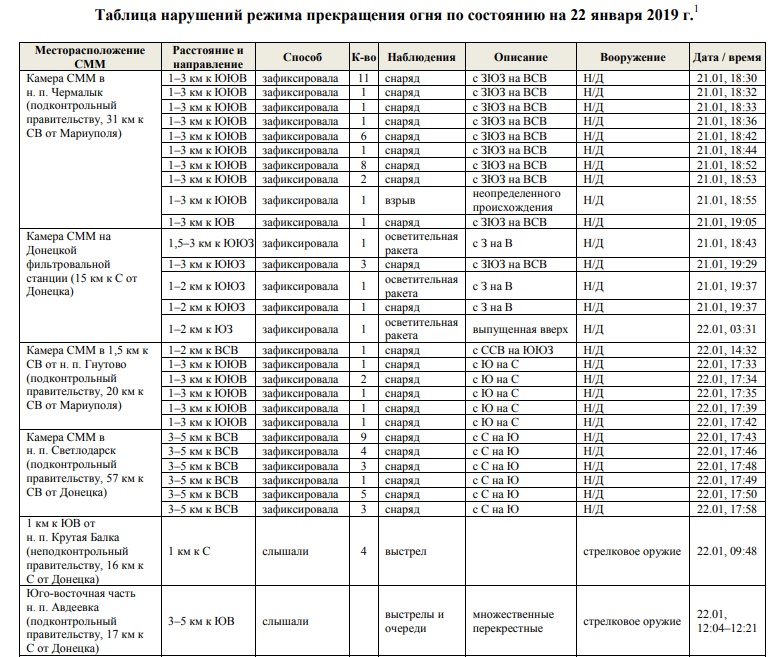 За указанный период СММ констатировала уменьшение количества нарушений режима прекращения огня (НРПО), при этом зафиксировав больше взрывов (около 190), по сравнению с предыдущим отчетным периодом (примерно 110 взрывов).
