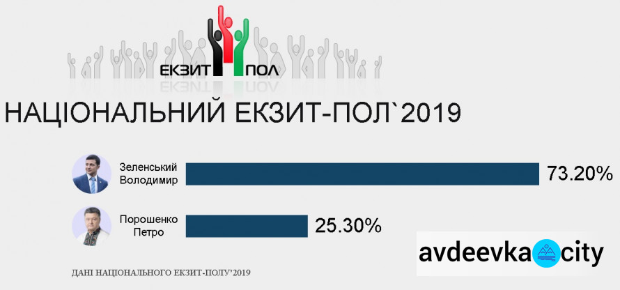 Вскоре после закрытие избирательных участков ведущие украинские социологи обнародовали данные Национального экзитпола касательно второго тура выборов президента Украины. Согласно им, действующего президента Петра Порошенко со значительным отрывом обошел политический новичок Владимир Зеленский.