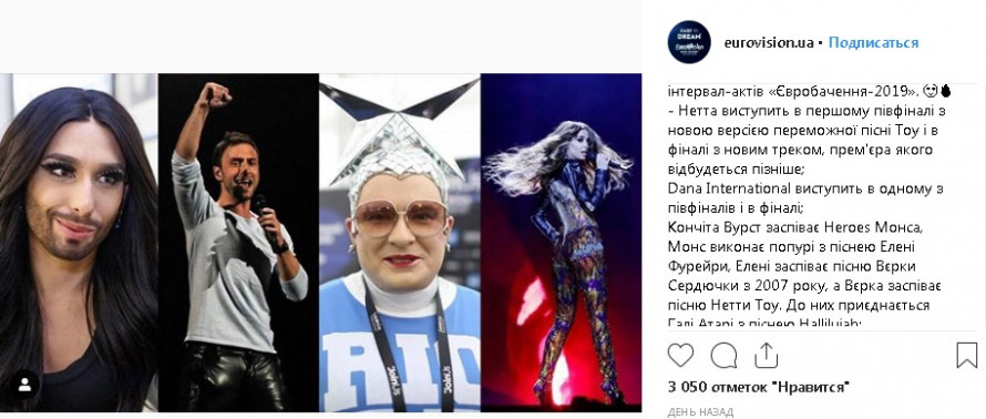 На официальной Instagram-странице украинского Евровидения сообщают, что Андрей Данилко выйдет на сцену в Тель-Авиве в образе Верки Сердючки. Артист будет выступать под песню победительницы прошлогоднего Евровидения Нетты Барзилай «Toy».