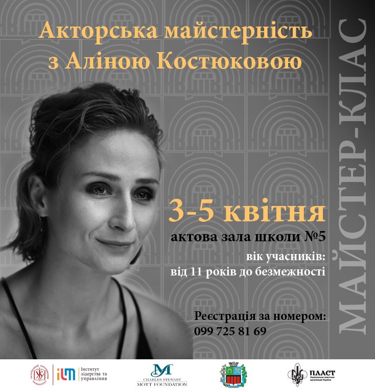 С 3 по 5 апреля Алина (снималась в фильмах и сериалах «Тайная любовь», «Вскрытие покажет», «Опер по вызову», «Пёс», «Ментовские войны. Одесса», «Лаборатория любви», «Личное дело») проведет серию мастер-классов по актерскому мастерству. Принять участие во встречах для различных возрастных групп могут жителей Авдеевки и гости города.