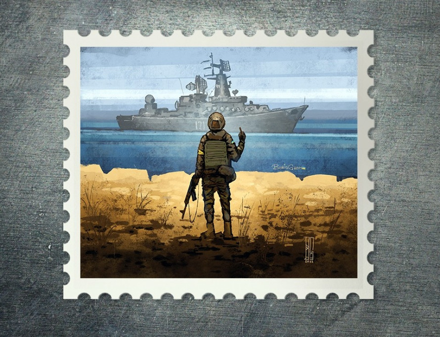 Укрпошта провела Всеукраїнський конкурс на розробку ескізу поштової марки «Русский военный корабль, иди на#уй!». Ескіз, який переміг в народному голосуванні, надрукують спецтиражем вже найближчим часом, повідомляє avdeevka.city.
