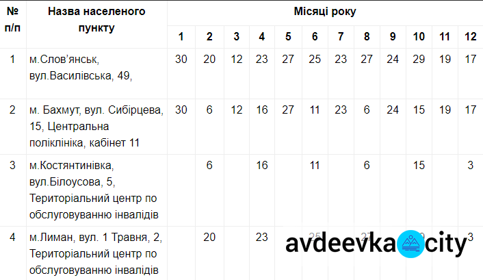 Управление социальной защиты населения военно-гражданской администрации Авдеевки обнародовало график работы выездной медико-технической бригады Полтавского казенного экспериментального протезно-ортопедического предприятия по Донецкой области на 2020 год.