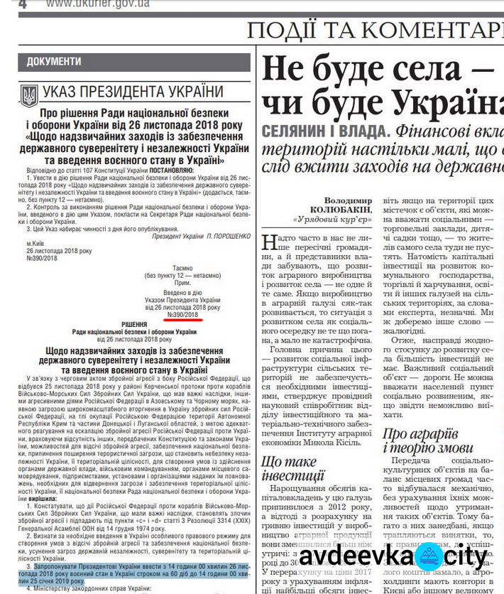 Публикация в правительственной газете "Урядовый курьер" указа Президента о введении военного положения ввела в заблуждение миллионы украинцев.