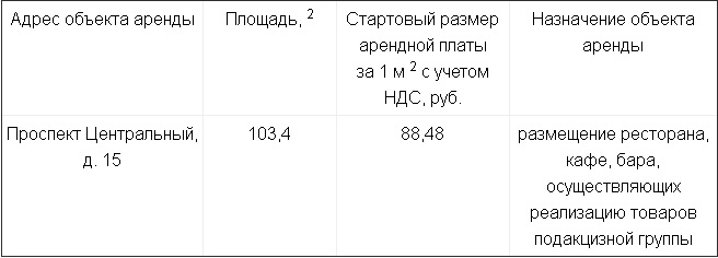 В аренду сдают помещение в доме №15 на проспекте Центральный. Там предлагают разместить ресторан, кафе ил бар, осуществляющие реализацию товаров подакцизной группы.