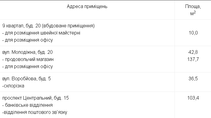 Как сообщает AVDEEVKA.CITY, речь идет о помещениях по ул. Молодежная, Воробьева, а на также на 9-м квартале и проспекте Центральный. Подробнее смотрите в таблице.