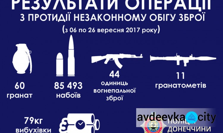 Отметим, что в течение последних трех недель (с 6 сентября) полицейскими подконтрольной части Донецкой области изъято более 40 единицы огнестрельного оружия, свыше 10 гранатометов, почти 85,4 тыс. боеприпасов (в том числе - 60 гранат), а также 20 взрывных устройств и около 80 кг взрывчатки.