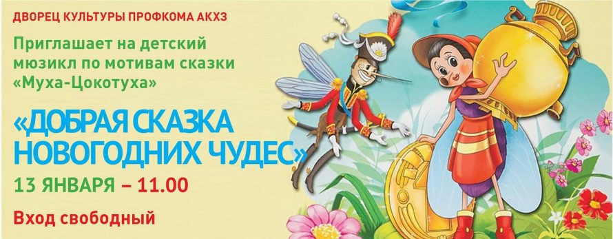 Как передает AVDEEVKA.CITY со ссылкой на Метинвест Авдеевка, по многочисленным просьбам авдеевцев на сцене Дворца культуры АКХЗ 13 января вновь оживёт " Добрая сказка новогодних чудес " по мотивам сказки Корнея Чуковского «Муха-Цокотуха».