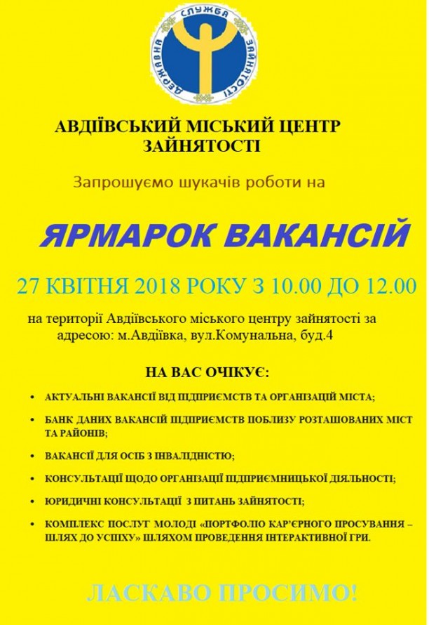 Авдеевский городской центр занятости приглашает в пятницу на масштабную ярмарку вакансий.