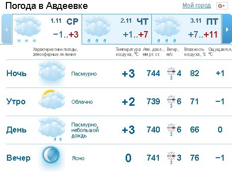 Что до прогноза погоды в Авдеевке, то синоптики похолодания пока не обещают.
