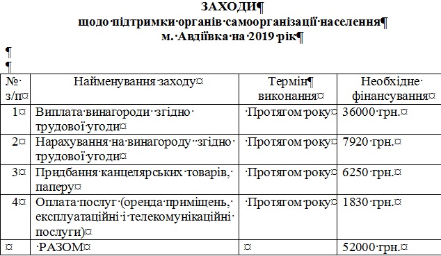 В прифронтовій Авдіївці затвердили заходи щодо підтримки органів самоорганізації населення на 2019 рік.